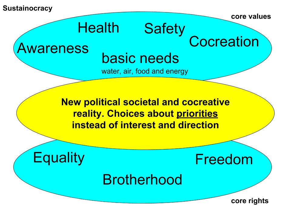 Since 2009 a new space was introduced. It had been coined Sustainocracy, a purpose driven version of democracy focused on core human values.