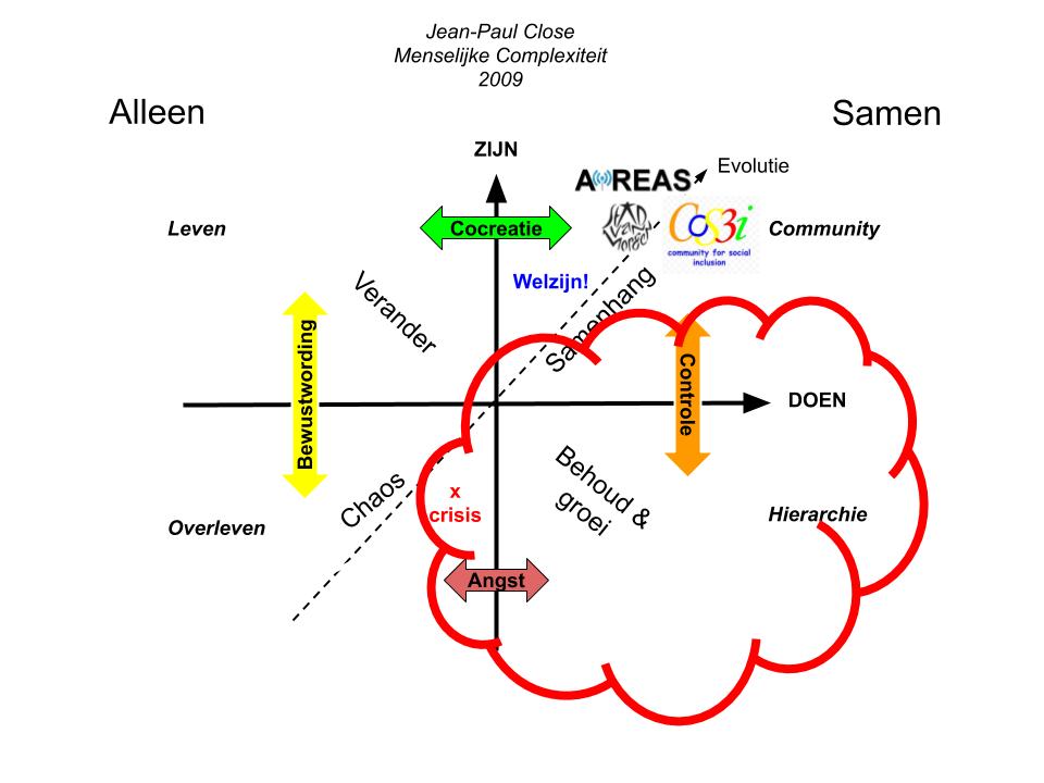 If we consider the current democratic political system of risk avoidance and fear of losing, then we can conclude that it is not at all geared at proactive avoidance, or change, or resilience through permanent change. It is focused mainly on control and “finding the proper explanation, no matter what”, even at the expense of ethics and morality. The system has exposed its weaknesses, not just at the level of driver’s seats but also the blindness of the masses who made (lured into, forced into, voluntarily accepted, reluctantly sat back, never even thought about it, etc) themselves dependent. In essence “fear” and “control” in all layers of society is predominantly present, justifying all decisions (red cloud in the picture of human complexities).