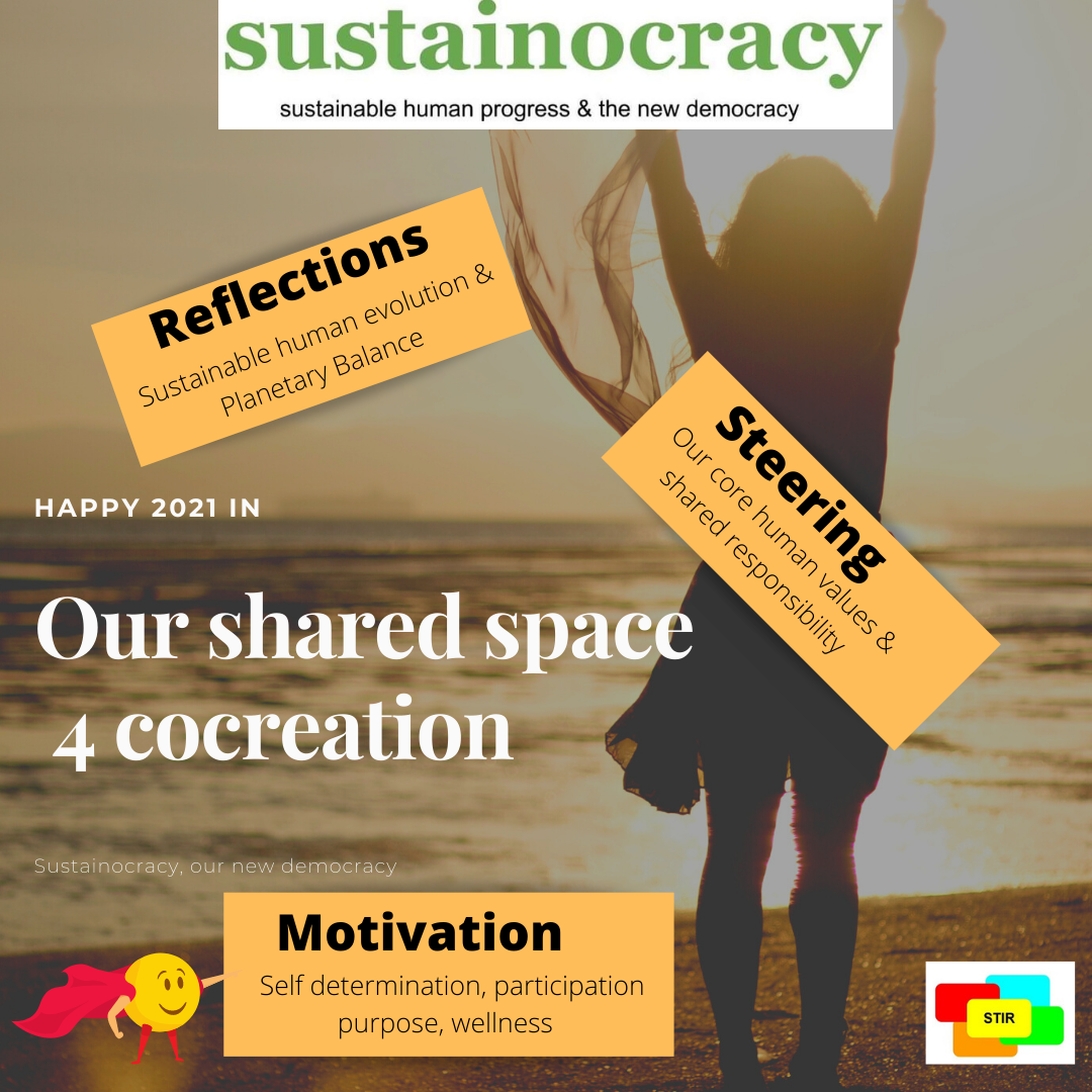 That is why Sustainocracy emerged. Reasoning from five core natural values, that the human being is also accountable, including its societal “business” mentality, Sustainocracy places the functioning into a sustainable human evolutionary context. Some costly issues of “the business” can then disappear as we take proactive responsibility together, including “the business”, as equals. We humans ARE nature and the “societal business” is OUR business and hence also our responsibility to make best use of it. It is however not society, it is an instrument. Society is the collective human community with our core natural values for wellness, and resilience. Like this we bring our past, present and future back together.