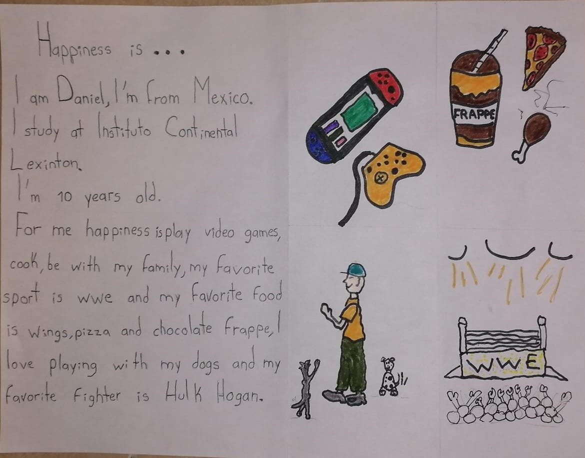 In our worldwide co-creation attempt to share the happiness vibe through art, the children of the Continental Lexington School in Mexico, age 6 to 11, shared their personal impression about happiness with us. During our events on Happiness Day (March 20th) we will show the impressive worldwide collection. These children are the first to make us happy. Here some teasing examples of their beautiful contributions to the world. More where this came from….just join us during the happiness events…..