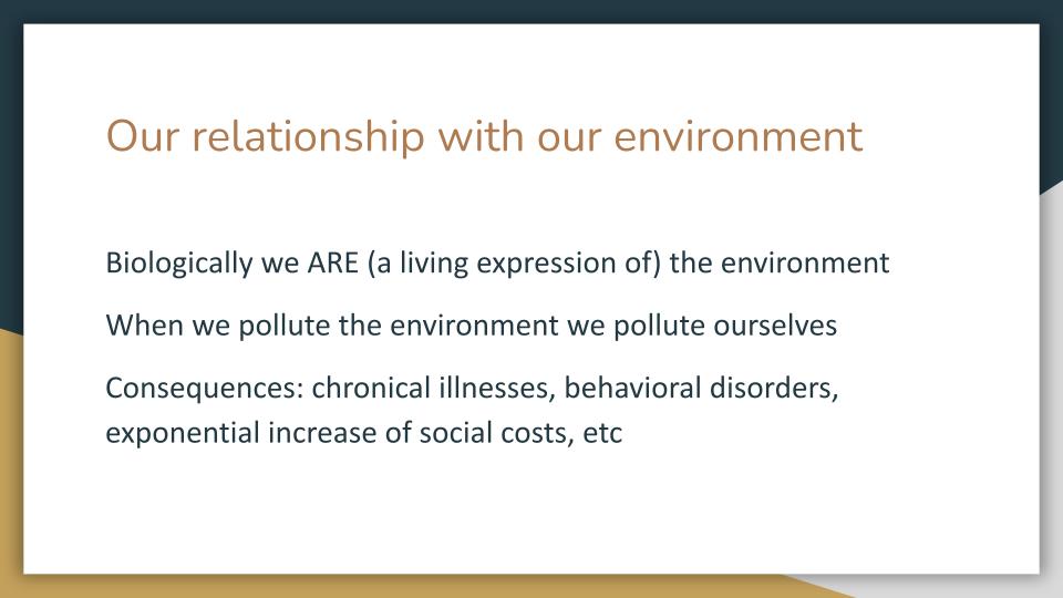 As a human being we are closest to nature, in fact we ARE nature. If we pollute or destroy our natural surroundings we pollute and destroy ourselves.
