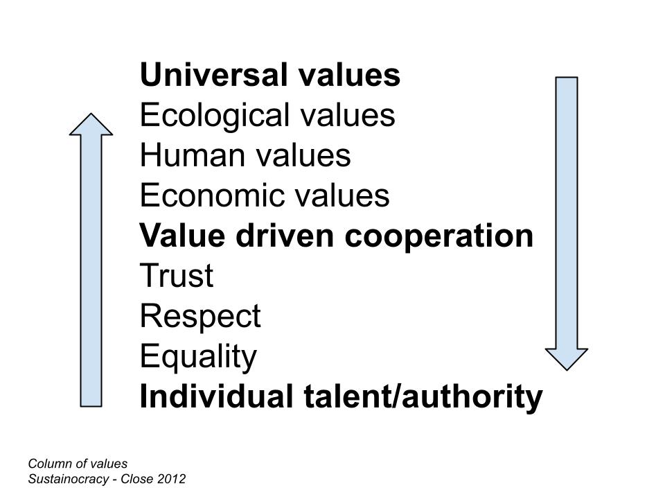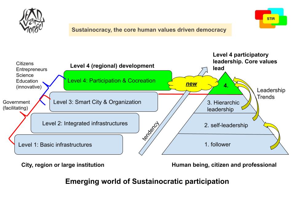 In Sustainocracy we do this as a new mindset with great importance for sustainable human resilience. Sustainocracy is based on our core natural human values for sustainable human progress and resilience (balanced wellness) as a living biological species, and our shared responsibility to develop and share those values in co-creation. Here are a few illustrations out of our line of thinking and acting of Sustainocracy that serve as ingredients for lasting Peace and Progress.