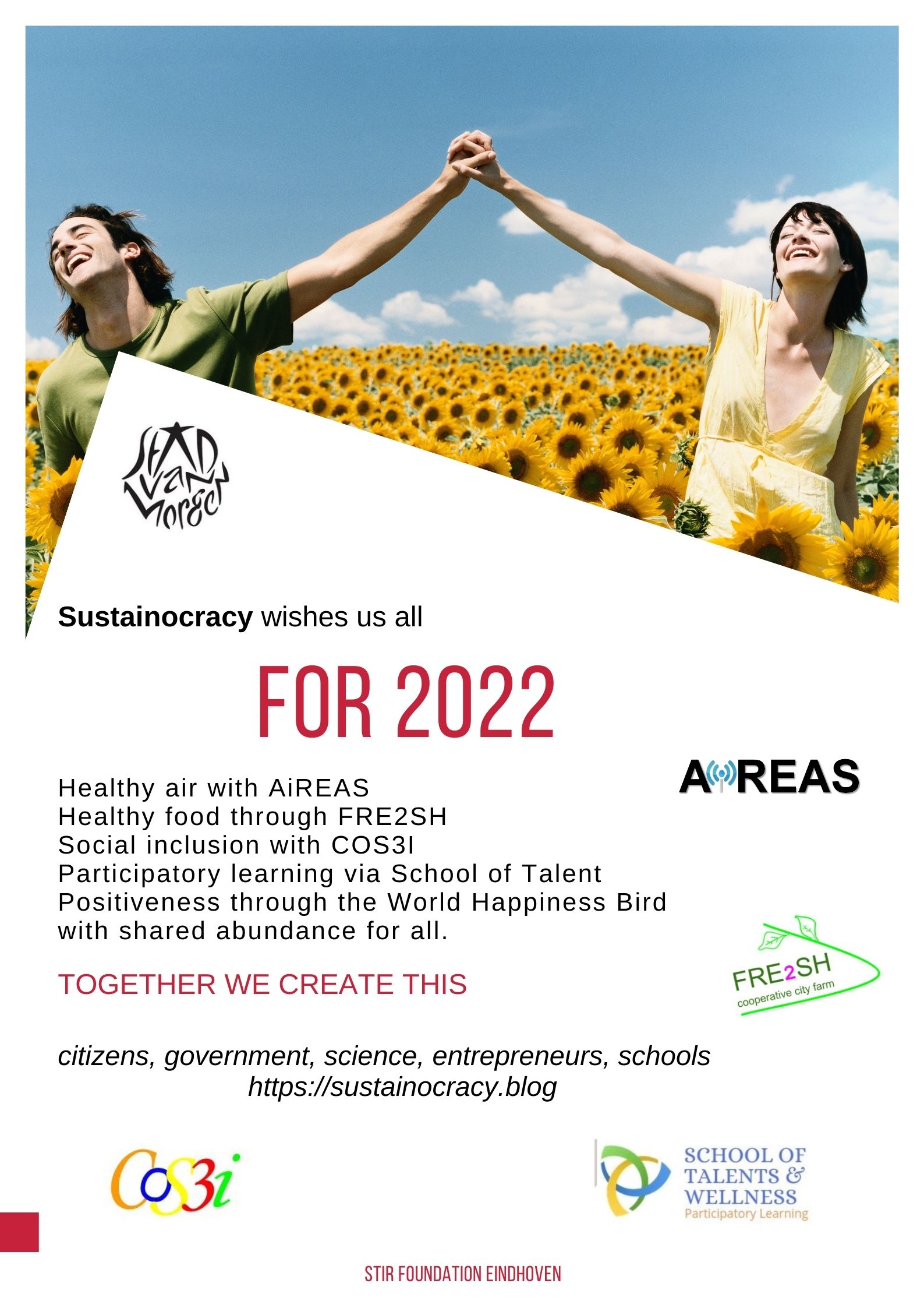 “In Sustainocracy we develop our wellness driven society as a shared cocreation and joint responsibility, not a political nor commercial delegation”. All (people and institutions) are welcome to join….