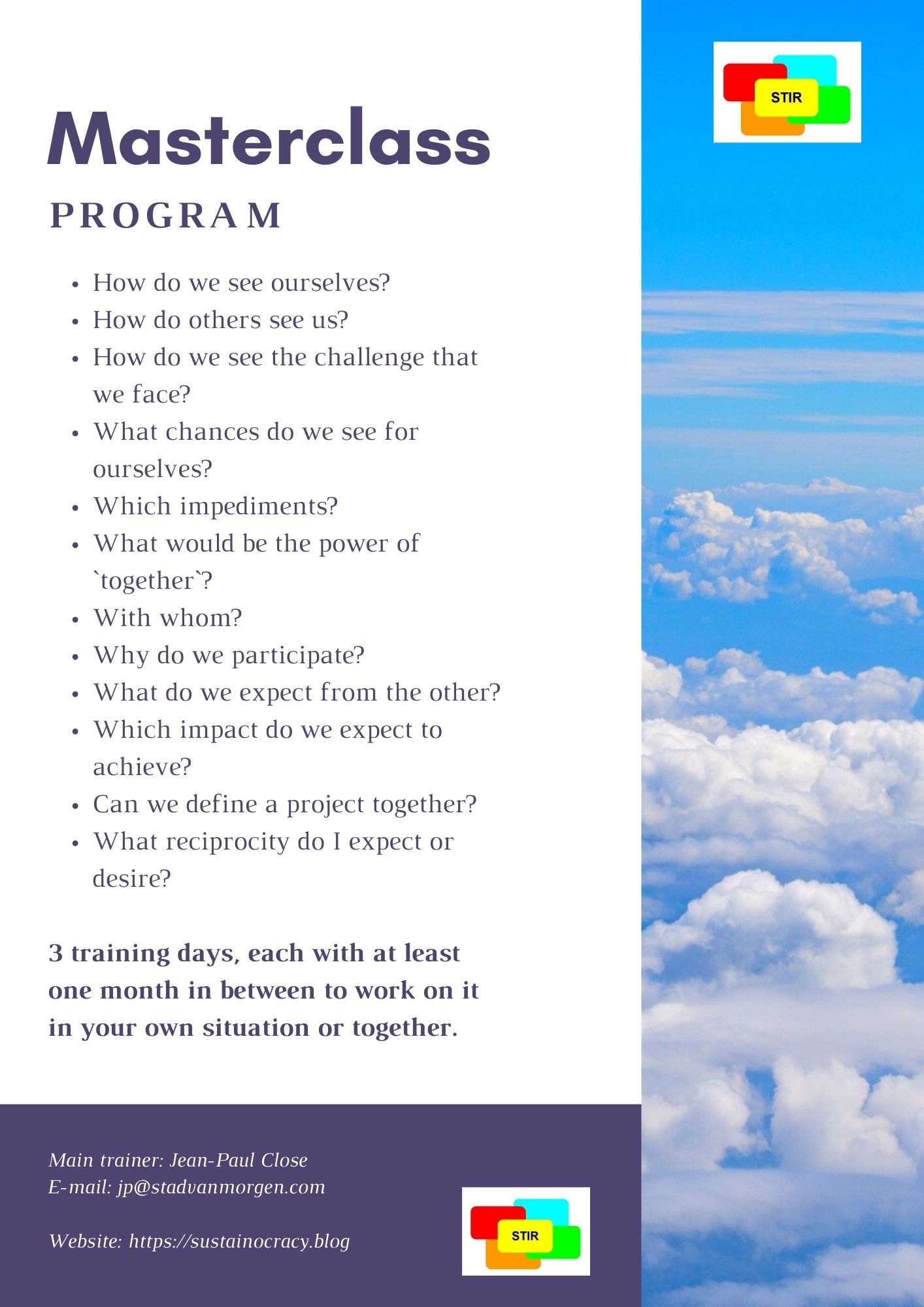 Doing such changes together, in a multidisciplinary environment, makes a difference. It becomes easier, with the support and admiration of your surroundings. Especially if this surroundings is undergoing transformative changes of their own and at the same time, supported or enhanced by yours. This masterclass is being offered strategically to all stakeholders of the region of Southeast Brabant in the Netherlands that have joined the AiREAS community for regional health and a healthy environment. Such a commitment requires not just one transformative change but many. The masterclass is also made available to other enterprises, regional communities or businesses in the world dealing with complex issues for sustainable progress.