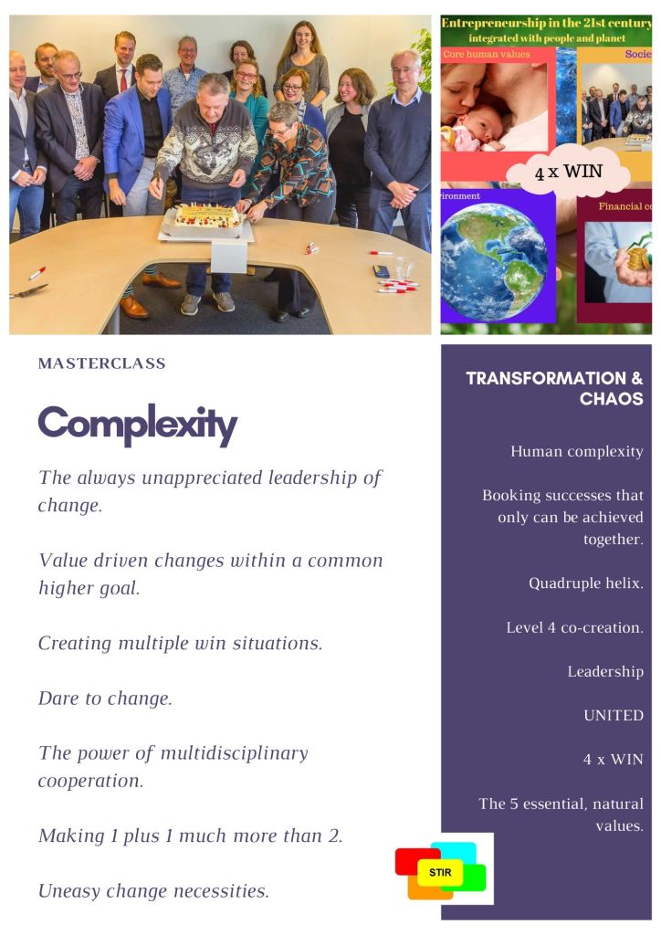 Whether it is the make over of a company from 1 x WIN into 4 x WIN, the closure of a road for traffic for healthy air and new urban functions, the abandoning of a product line for another, the change of a cultural habit for a more healthy one, changing job, redesigning an urban quarter, transforming a farm into a bed and breakfast, the battle between the car and bike in towns, starting to work from home to avoid commuting, etc. They are all transformative activities that face fear, uncertainties and maybe even opposition of your surroundings. They require vision, determination, guts, leadership and firm belief that these changes are for the better, even if no one else sees it yet. The complexity of change demotivates many, especially those in key functions. They prefer the status quo to preserve their position even if change is required from them. Self sacrifice is feared and not always a nice foresight when guts and self confidence fail.