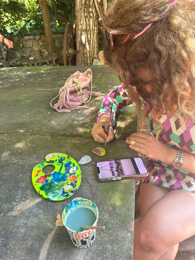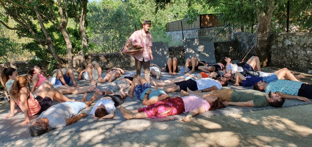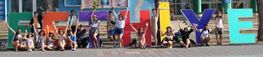 Our five-day workplace was in the mountains near a historically abandoned place called “Ghost City” and also “the Stone City” (Kayaköy). The workplace itself was a green, community-like oasis, with fruit-bearing trees and shrubs that provided a lot of cooling in a mostly very hot climate and surroundings. All kinds of housing, from tree houses to tents and mud huts, formed the accommodation. During five days we were immersed in workshops that could stimulate mental health.