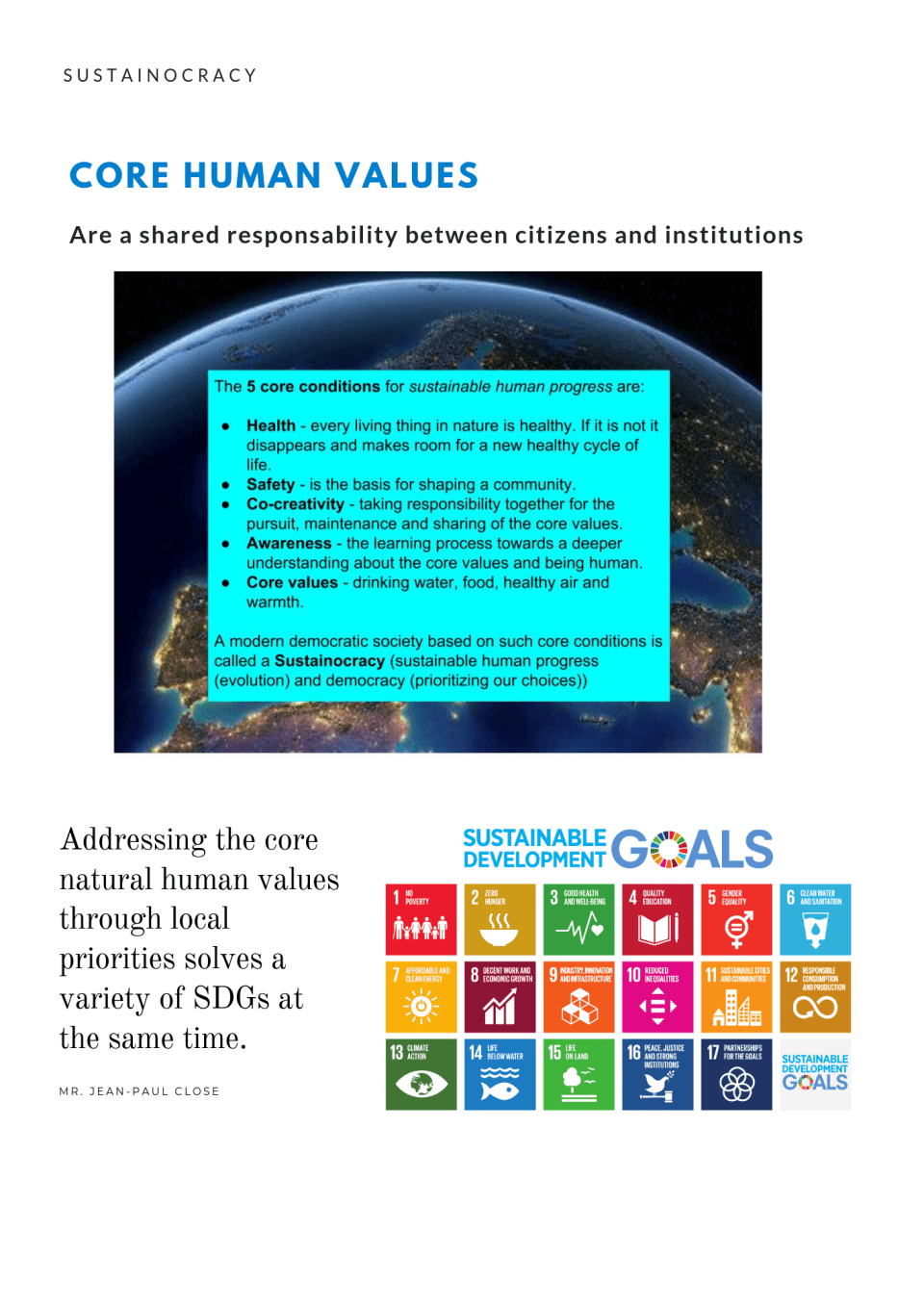 So we need to change our way of thinking. To do that we introduce the 5 core natural human values for Sustainable human progress as well as our shared responsability between citizens and institutions to assure this values at all times. This is what we are going to practice during the Summit, just to get a feel what it is to reason using a different reference framework than what we are used to.