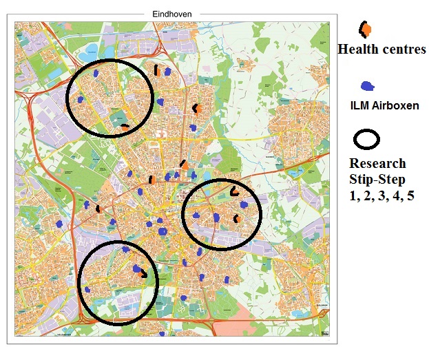 AiREAS is a civilian initiative (sustainocratic) in Eindhoven (the Netherlands) to co-create a healthy city using air pollution measurement and health research as guiding principles. End 2013 a fine maze air pollution network was installed and calibrated. It measures small particles (PM) in the air all the way down to UFP (ultra fine particles), which are smaller than a virus and dangerous for human health. This network (called ILM) measures and communicates results every 10 minutes. This virtual real time measurement is unique in the world in combination with the enormous amount of data that is gathered. It’s design and installation was done at a much lower cost than usual and is still being optimized for usages around the world.